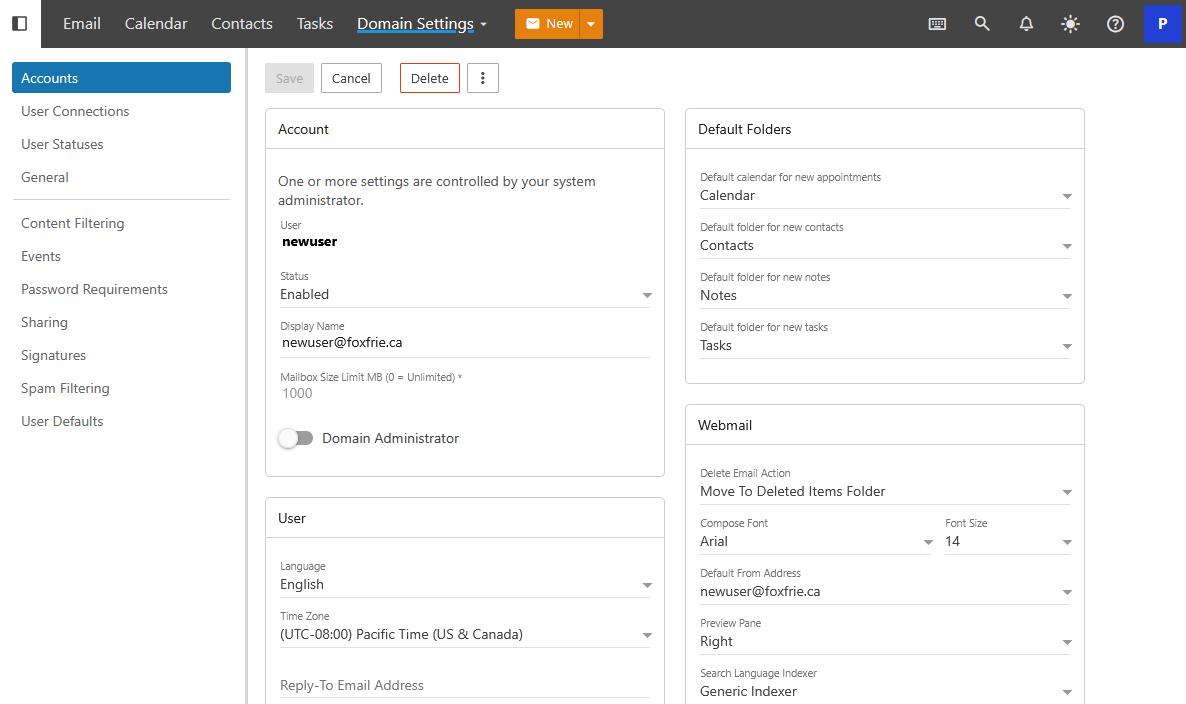 After clicking Save you will be redirected to the settings page for this newly created User. The account has now been created and is ready for use right away.